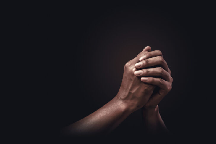 Praying hands with faith in religion and belief in God on dark background. Power of hope or love and devotion. Published March 30, 2020 at 729 × 486 in Coronavirus Diaries Part 2: Worshipping Alone Together Praying hands with faith in religion and belief in God on dark background. Power of hope or love and devotion.